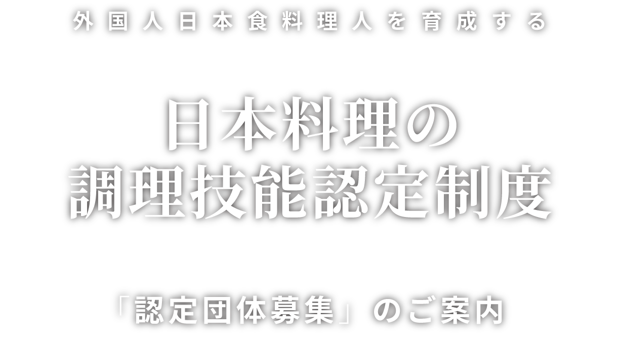 本制度は、海外の外国人日本食料理人のうち日本料理に関する知識及び調理技能が一定のレベルに達した者を、民間団体等が自主的に認定する制度です。 -
